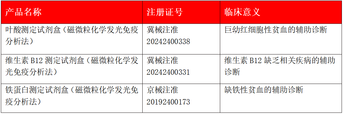 表1.熱景生物貧血三項(xiàng)產(chǎn)品信息