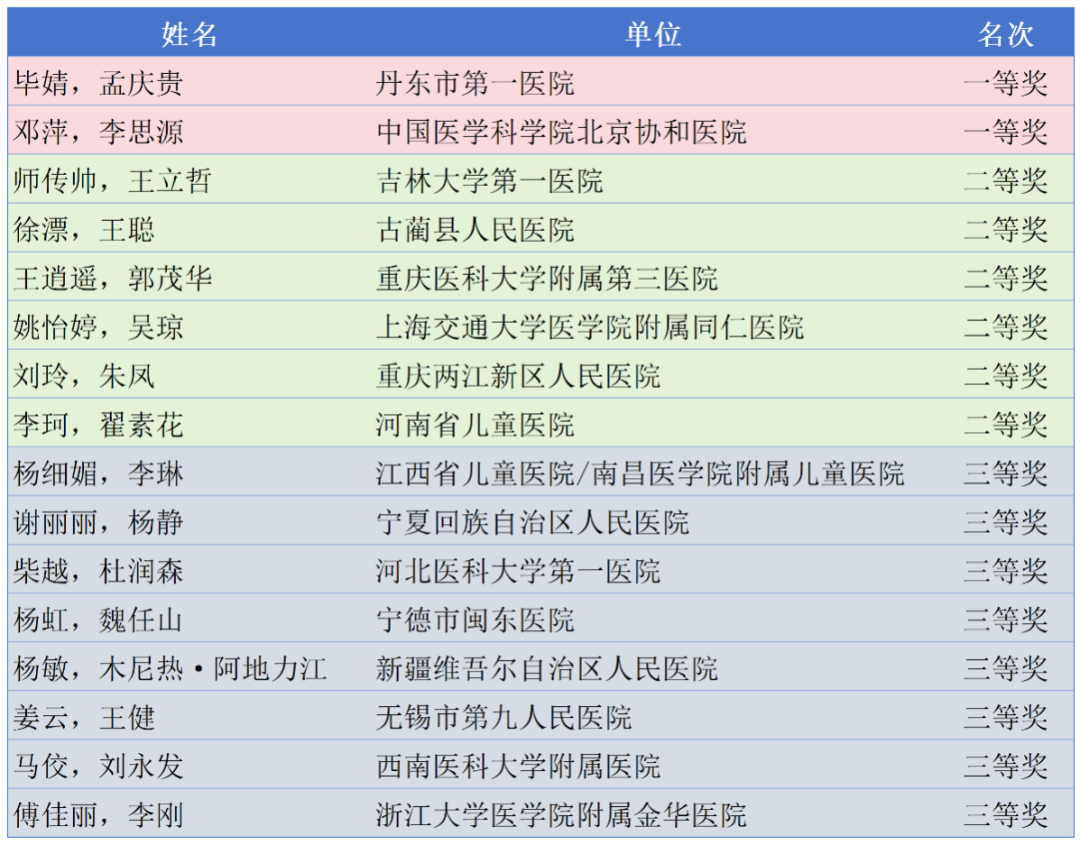 評審專家對選手們的表現進行綜合評價后,最終的比賽結果如下。