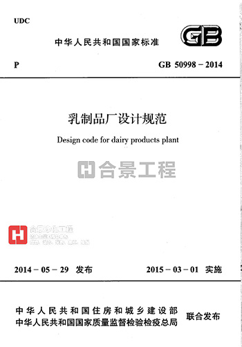 現(xiàn)批準《乳制品廠設計規(guī)范》為國家標準,編號為GB50998-2014,自2015年3月1日起實施。其中,第4.6.2、4.7.1(1)、4.8.2、10.4.1(2)條(款)為強制性條文,必須嚴格執(zhí)行。