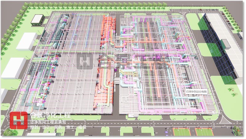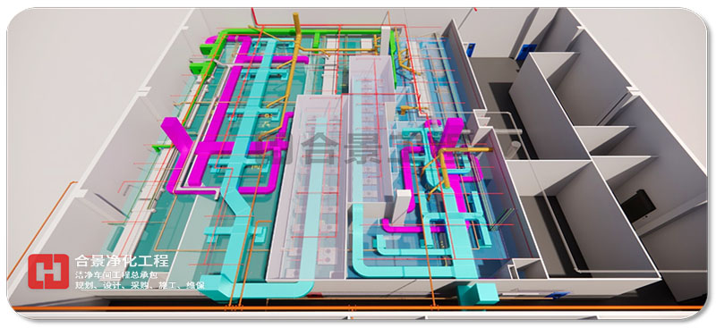 BIM 技術可應用于工程項目規劃、設計、施工、改建、運維等范圍,為產業鏈貫通、工業化建造和建筑創作提供技術保障。合景智慧建設(廣東)有限公司在潔凈廠房工程建設中,以BIM技術為全周期模擬,對工程全局,即潔凈環境、人流物流、暖通、電氣工程、整廠能耗、質量、安全等方面提供方案優化和科學決策提供依據,與各專業協同工作、項目的虛擬建造和精細化管理,為工業潔凈室建設提質增效、節能環保創造條件,虛實結合,賦能項目,打造交鑰匙項目。
