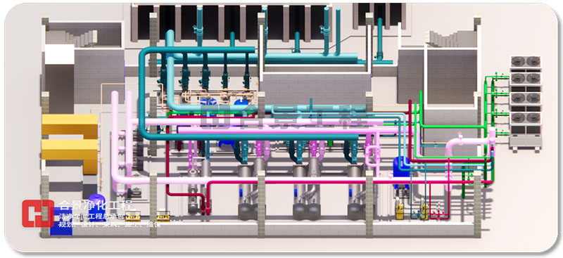 6. 為保證無吊頂區域的美觀性,空調水系統、工藝等管線并列布置;